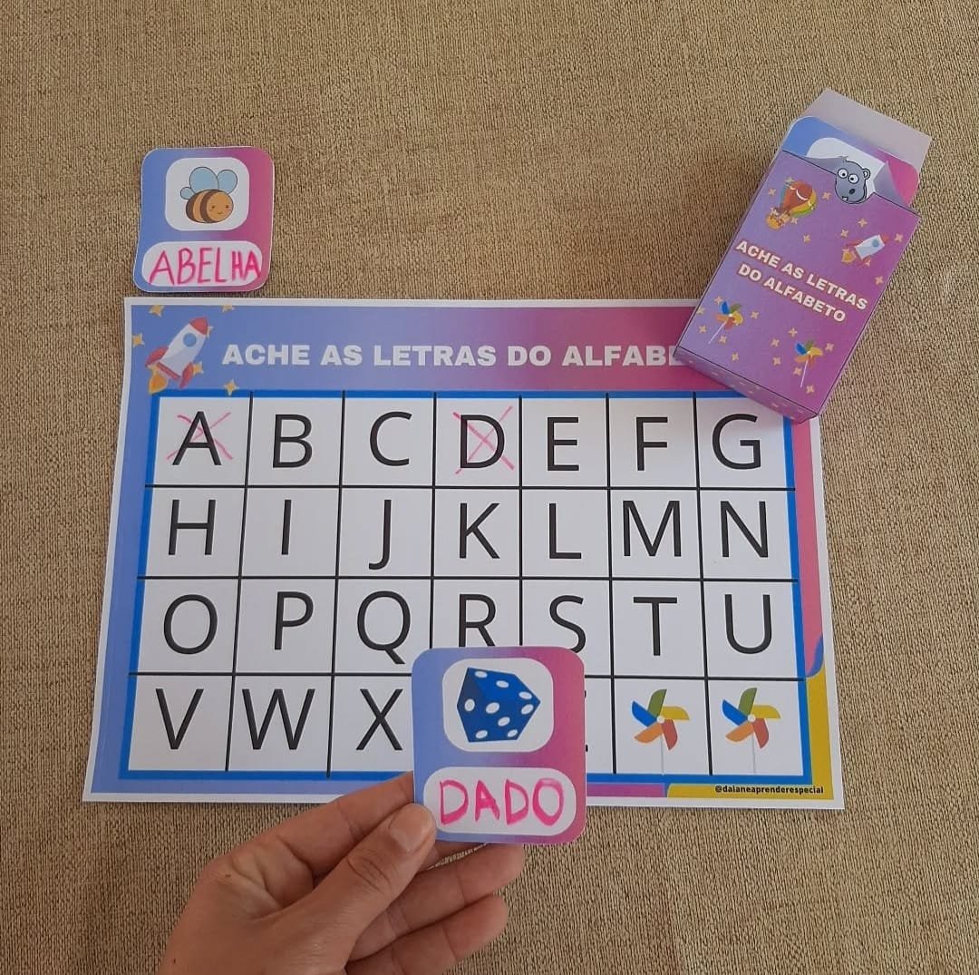Com 26 imagens e uma base do alfabeto, essa atividade estimula o reconhecimento das letras e a ampliação do vocabulário de forma lúdica e envolvente. Ideal para trabalhar a inicial das palavras ou a escrita completa, promovendo a consciência fonológica e a autonomia na aprendizagem.