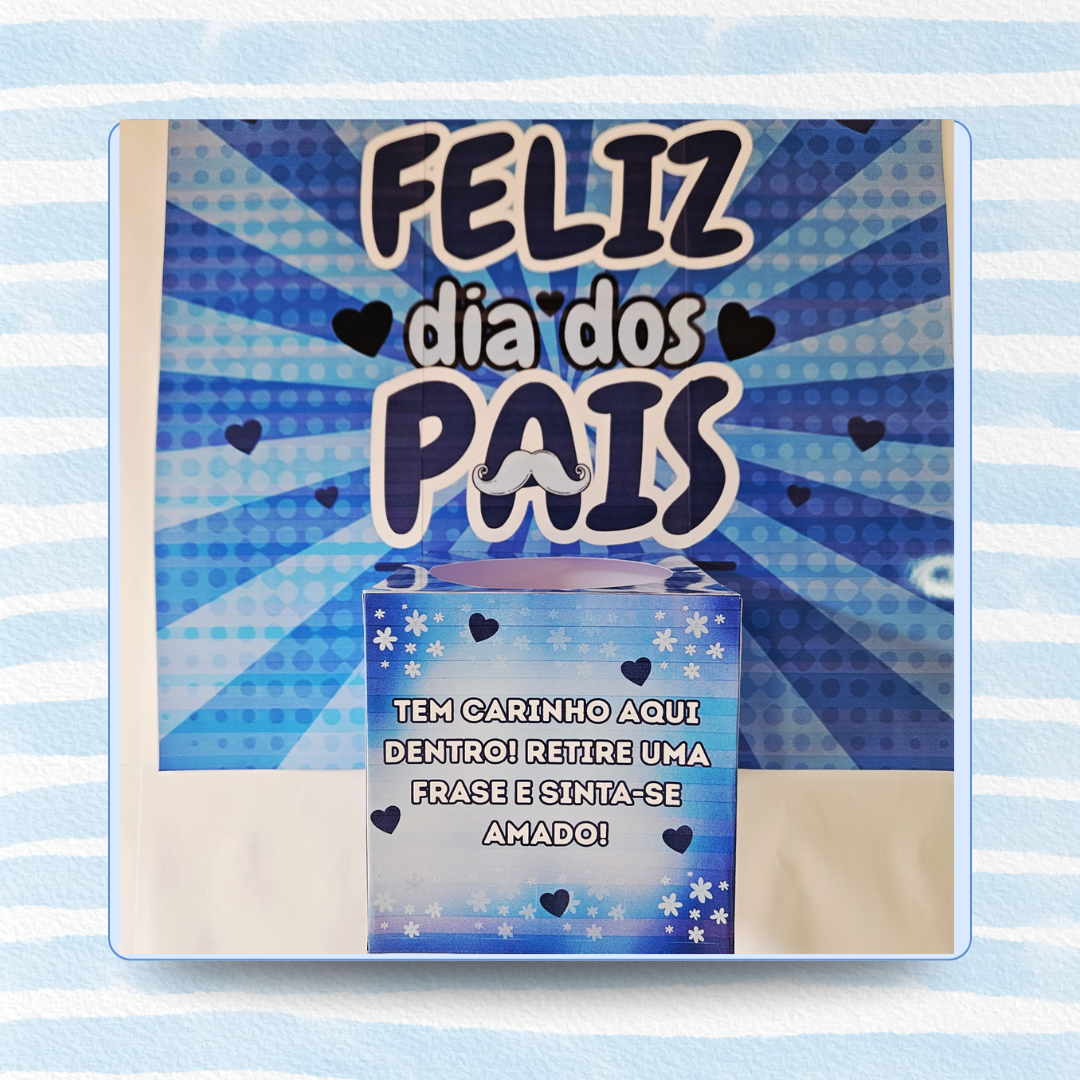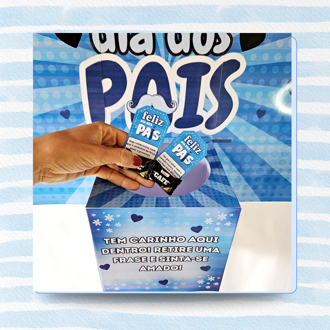 Caixa Motivacional para o Dia dos Pais pensado com muito carinho para valorizar todos os pais de forma especial e inspiradora! Cada detalhe foi criado para tocar o coração e também encantar afinal, além de emocionar, essa caixa é perfeita para decorar qualquer ambiente, levando beleza, afeto e reconhecimento a quem tanto se dedica com amor e coragem. Ela transforma o espaço e aquece o coração com mensagens cheias de significado. Um gesto coletivo, mas com impacto individual! Garanta já a sua, surpreenda e celebre os pais com um presente criativo, decorativo e inesquecível!