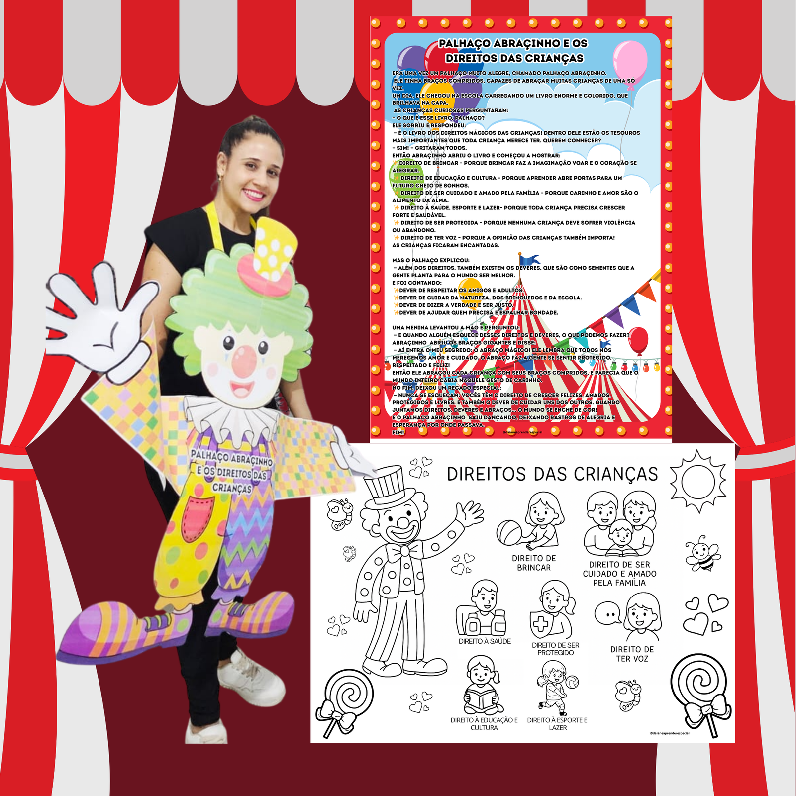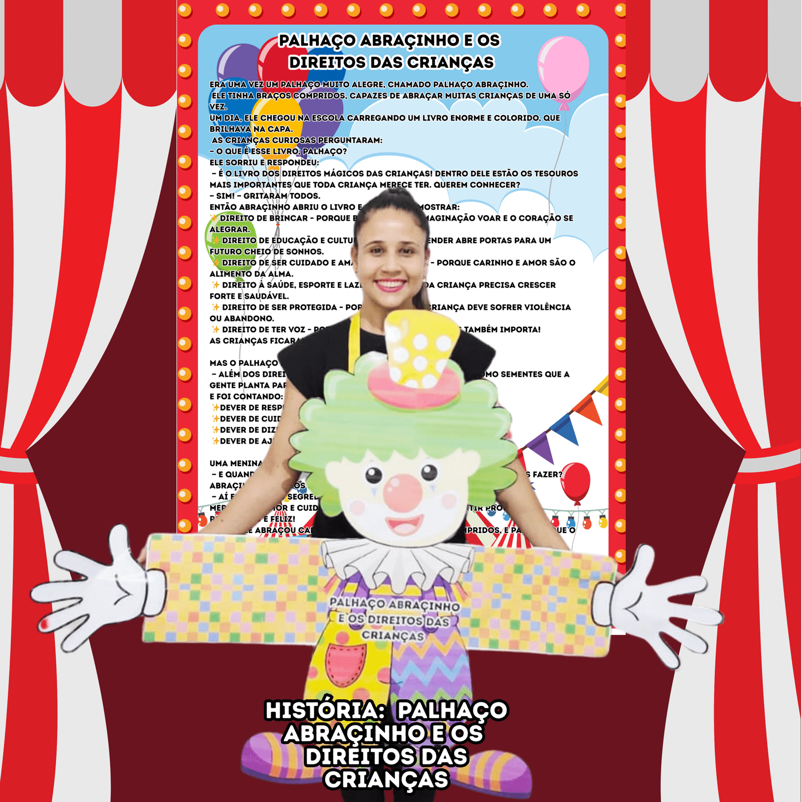 Um material encantador para o Mês das Crianças! Através da história do Palhaço Abraçinho, os pequenos aprendem de forma divertida sobre os direitos e deveres das crianças, em uma narrativa lúdica e cheia de carinho.