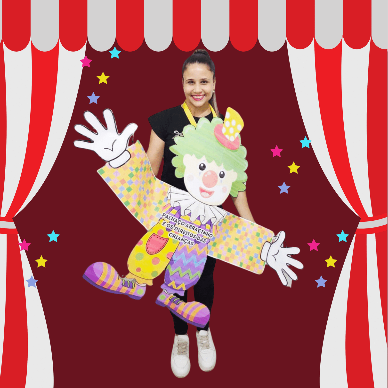 ✅Palhaço Abraçinho ampliado com braços compridos para abraços mágicos