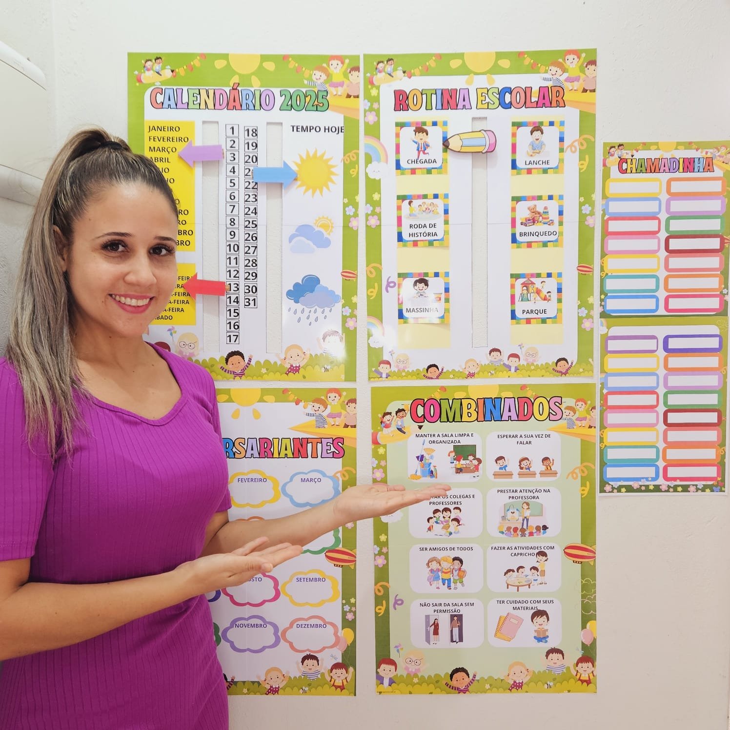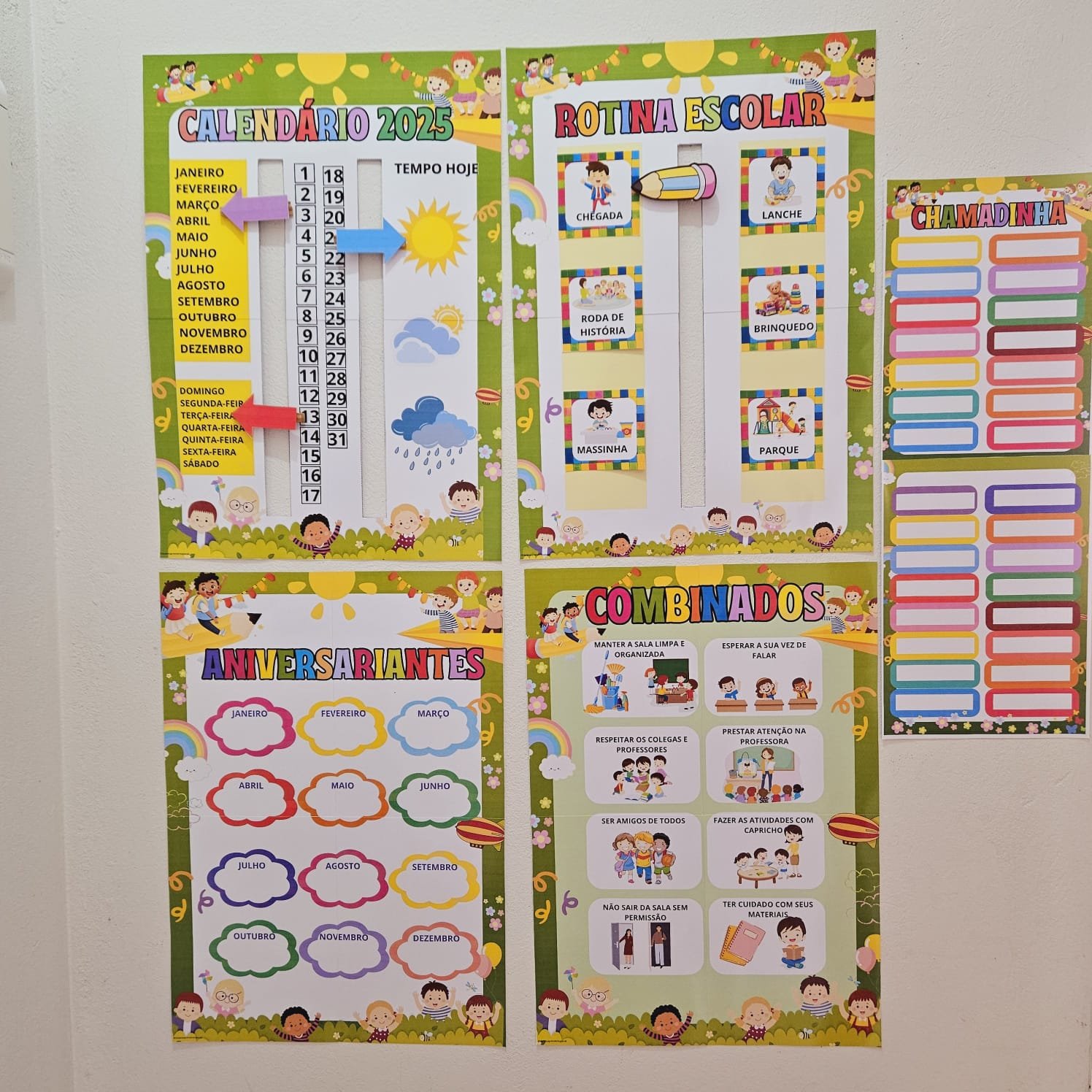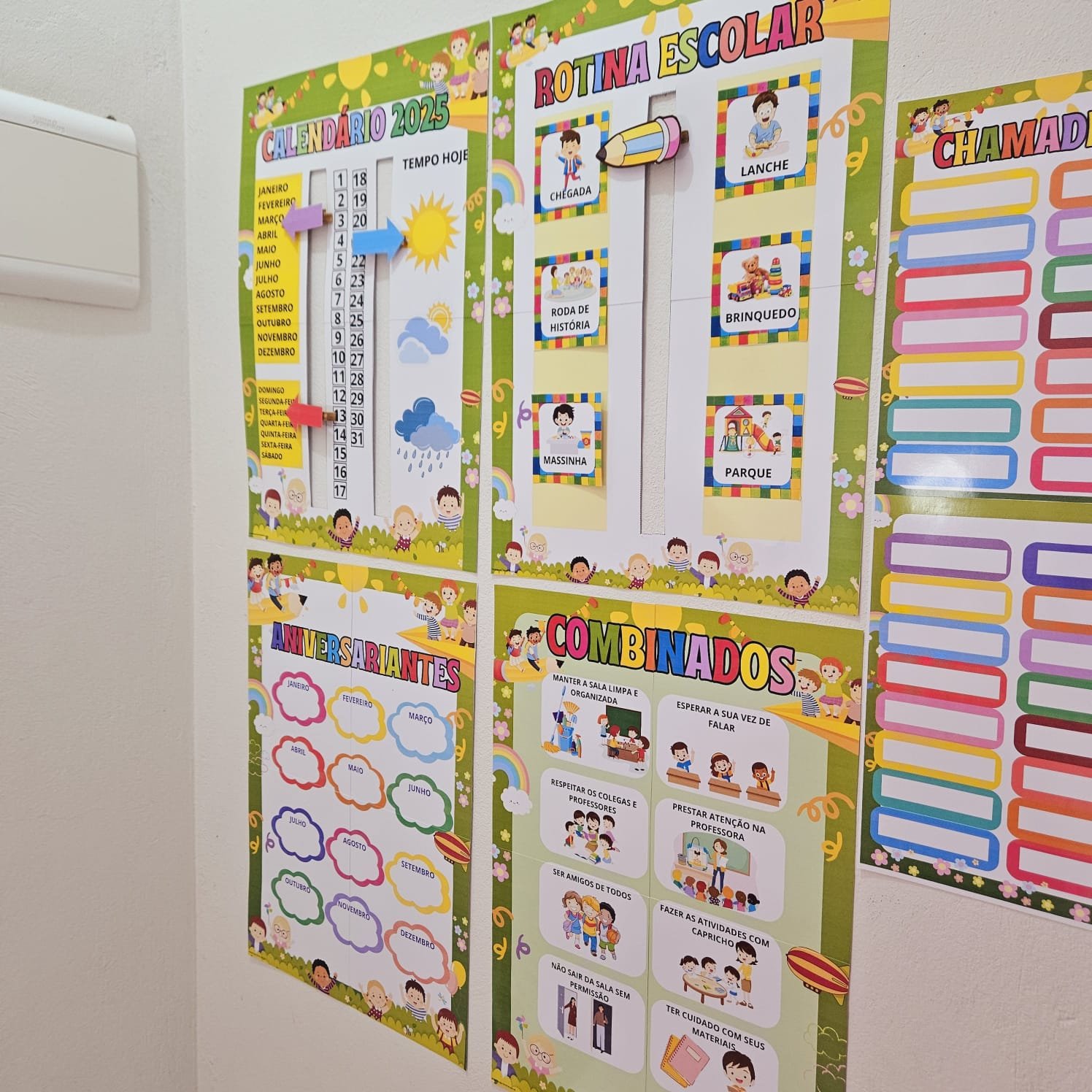 Kit de Decoração Escolar 2025 . Completo, colorido e pronto para transformar sua sala com organização e charme! Inclui calendário, rotina, chamadinha, aniversariantes, combinados e muito mais, tudo ampliado e em PDF para impressão.