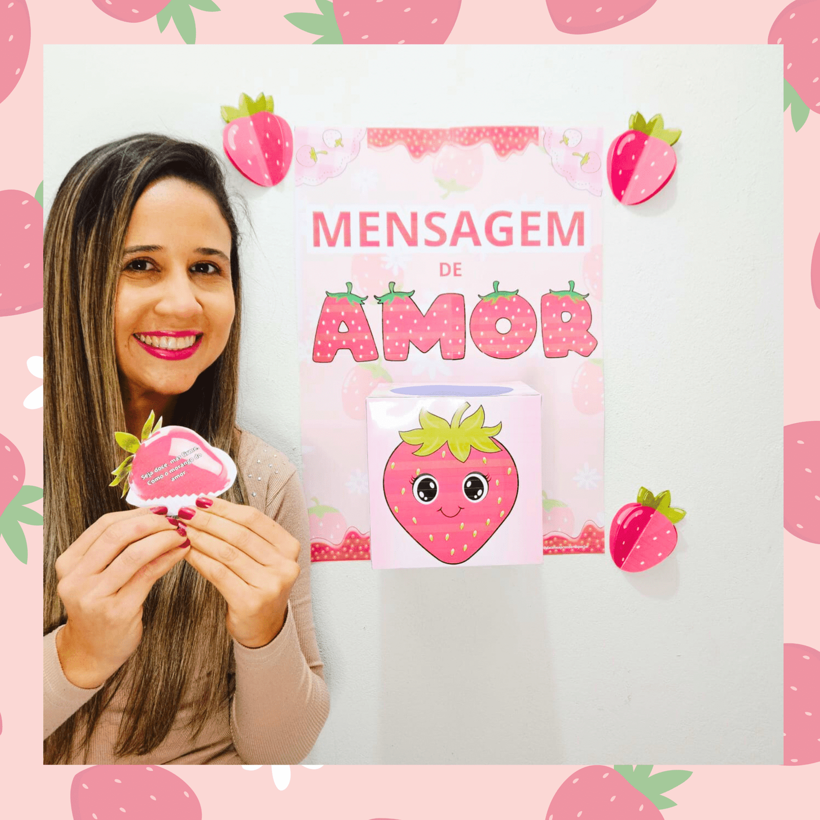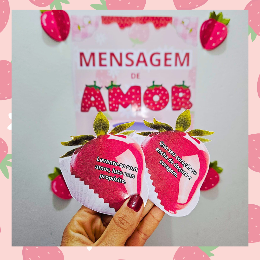 🍓 Adoce o dia com a Caixa de Mensagens do Amor! Inspirada no famoso morango do amor, ela traz frases carinhosas e motivadoras para espalhar afeto, encantar e fortalecer laços em qualquer ambiente. Um detalhe simples, doce e cheio de significado! Material em PDF. Contém mais de 50 mensagens motivacionais, caixa para montar e painel.