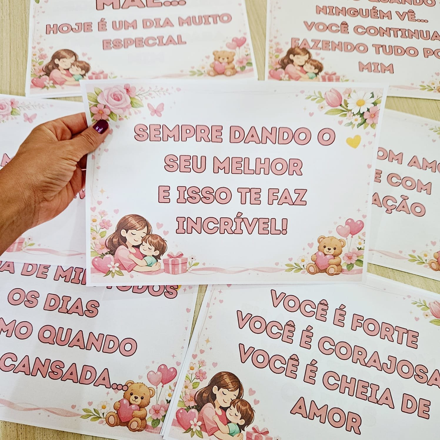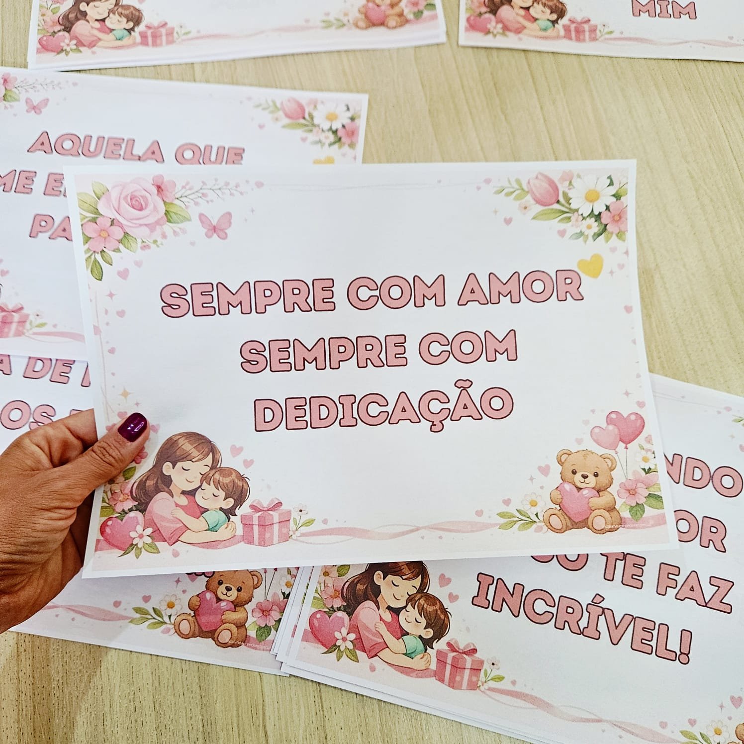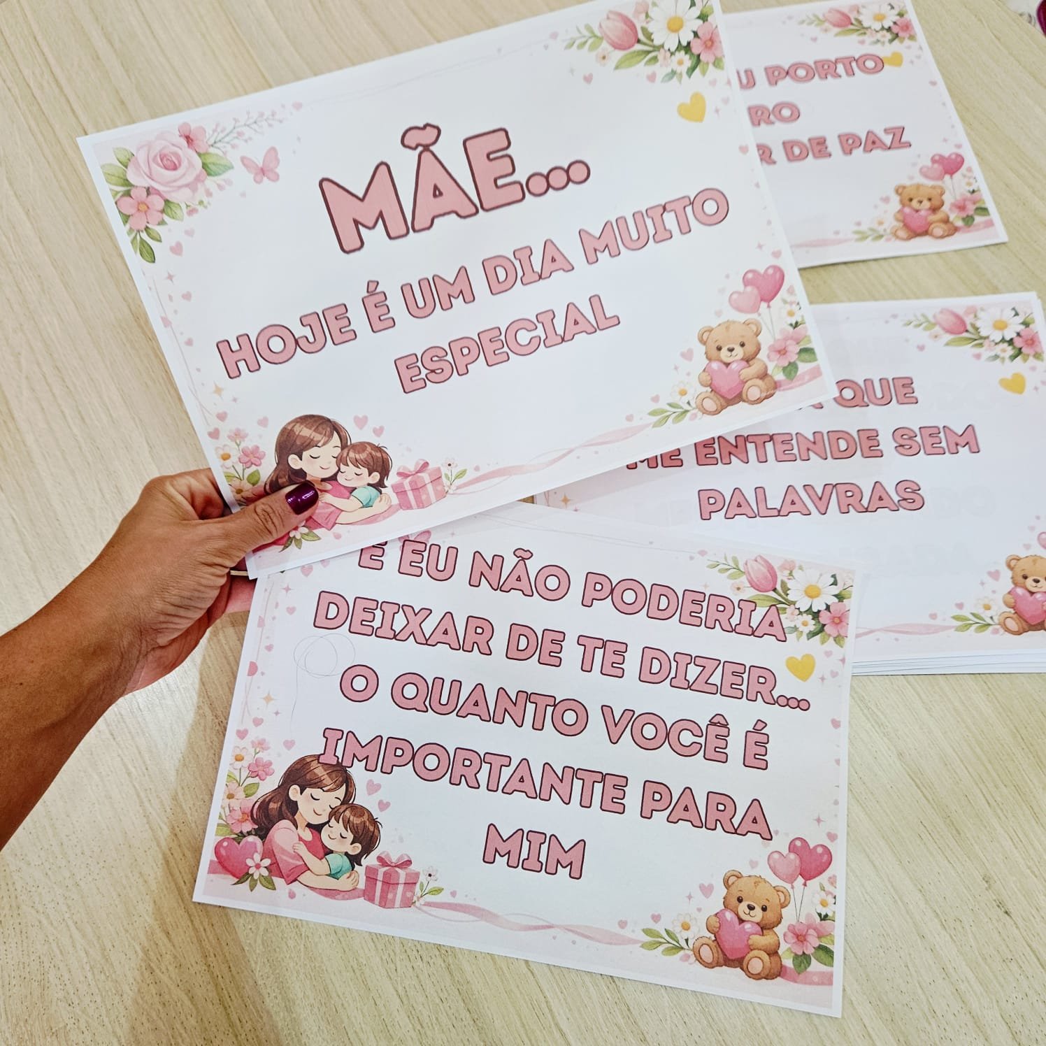 Cada frase se conecta, formando uma linda homenagem cheia de amor e gratidão. Um presente simples, mas inesquecível, que vai tocar o coração de cada mãe.